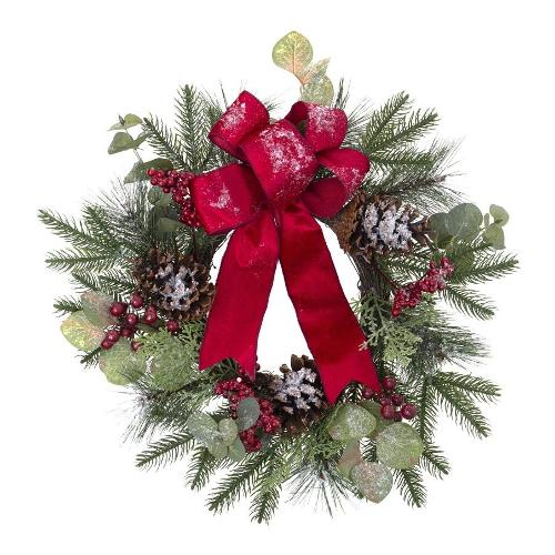 Corona Natale Pigne e bacche (45cm) Verde e Rosso 071696