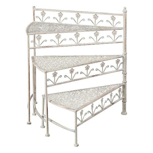 Porta piante ferro scaletta (56x31x65cm) Bianco anticato
