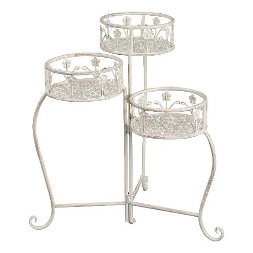 Amicasa Porta piante ferro pieghevole 3 posti (29x23x62cm) Bianco anticato
