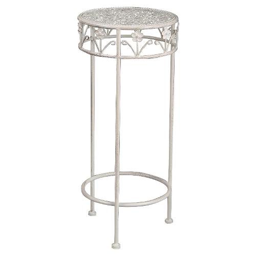 Amicasa Porta piante ferro medium tondo (27x60cm) Bianco anticato