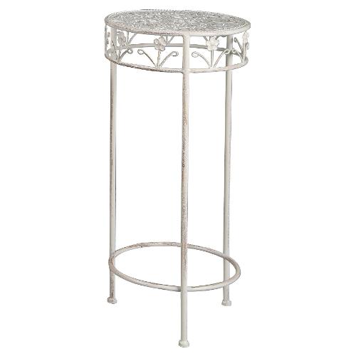 Amicasa Porta piante ferro grande tondo (32x70cm) Bianco anticato