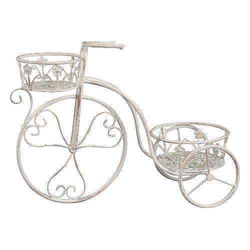 Amicasa Porta piante ferro bicicletta 2P (63x25x46cm) Bianco anticato