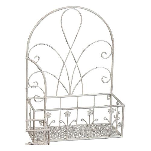 Amicasa Balconiera Media con schiena (36x15x50cm) Bianco anticato