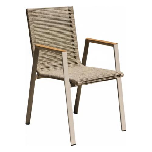 Amicasa Sedia con braccioli alluminio, corda GUADALUPE Art 3 Khaki e Champagne 2509 002