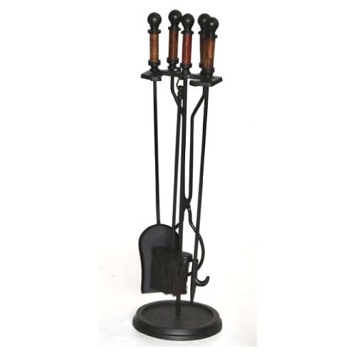 Kit attrezzi per caminetto realizzati in acciaio verniciato a polvere con impugnature in legno di mango composto da: paletta, scopetta, pinza, tirabraci.