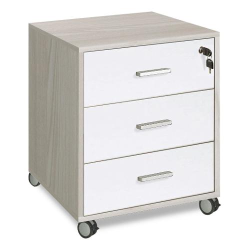 Sarmog QUADRANTE 733 Cassettiera ufficio 3 Cassetti Olmo chiaro e Bianco fiammato (50cm)