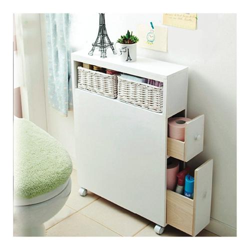 Mobile da bagno per sfuttare al meglio i piccoli spazi disponibili; due cassetti fontali, 2 cestini e vano posteriore