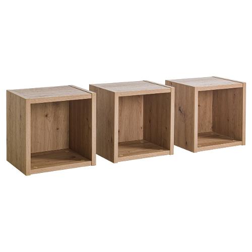 Ispirati alle linee pulite ed essenziali dell'arredamento nordico esprimono il loro carattere naturale attraverso l'utilizzo predominante dell'essenza rovere. Il design di questo set di 3 mensole Vitruvia lo rende perfetto per ambienti living dal gusto natural-style. La portata massima di ogni cubo è di 5 kg