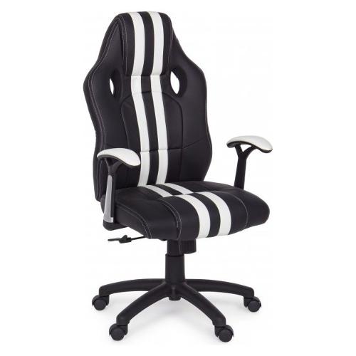 Base in nylon ø60 cm. Ruote in nylon. Seduta e schienale imbottiti e rivestiti in similpelle. Schienale provvisto di supporto lombare. Braccioli in acciaio verniciato a polvere con rivestimento in similpelle. Altezza regolabile e schienale reclinabile fino a 130° con block system. Da assemblare