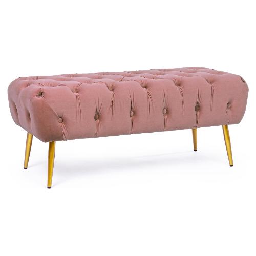 Struttura in MDF e compensato. Gambe in acciaio verniciato a polvere epossidica. Rivestimento in Poliestere effetto velluto e lavorazione capitonne'. Imbottitura in schiuma poliuretanica, densità seduta 25 kg/m3