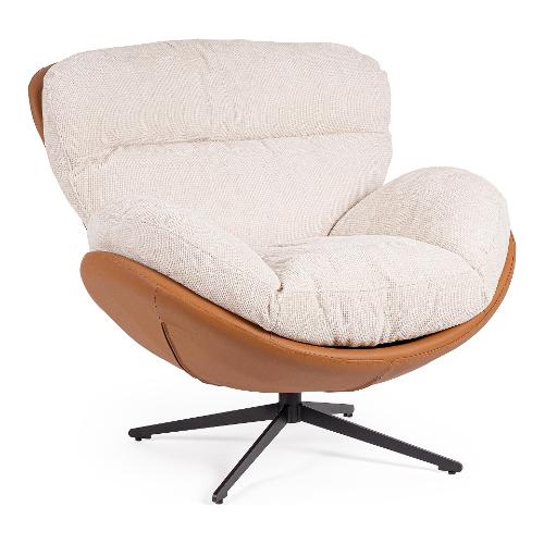 Struttura in compensato ed acciaio rivestita in similpelle, densità imbottitura 14k gr/mq. Base diam 795 mm con gambe in acciaio verniciato a polvere e seduta girevole 360°. Cuscini in Poliestere