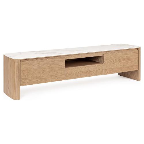 Struttura e gambe in MDF impiallacciato legno di quercia. Finitura a base di vernice poliuretanica. Piano in ceramica. Ante e cassetti con chiusura ammortizzata
