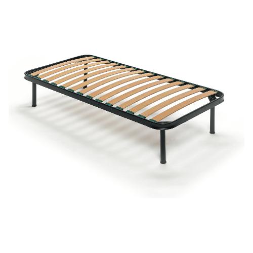 Struttura in tubolare in acciaio verniciato a polveri sezione 50x37 mm. Piano rete composto da 14 listelle in multistrato di faggio misura 68x12 mm. Supporto singolo fisso in nylon anticigolio