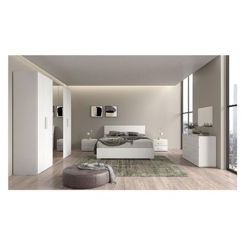 Composto da egos 1 letto due piazze con contenitore, con rete, senza materasso; prime 2 comodini, 1 comò; egos 1 specchiera; first 1 armadio 6 ante battenti