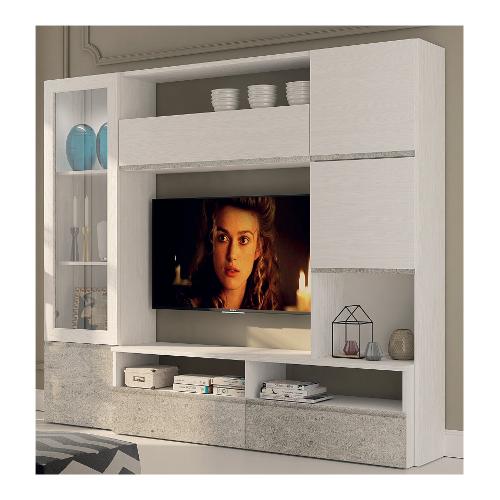SILVER Parete soggiorno Frassino gesso e Cemento (245cm)