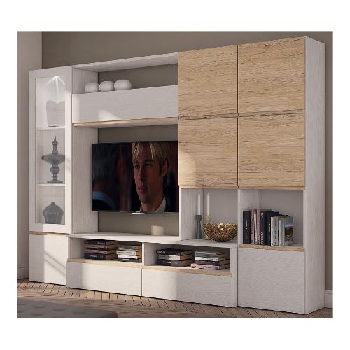 SILVER Parete soggiorno Frassino gesso e Quercia (300cm)